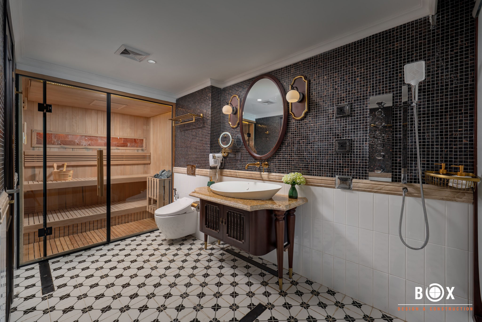 Phong cách: Giao thoa giữa nét hoài cổ Pháp và vật liệu truyền thống Á Đông (gỗ trầm, gạch bông, phù điêu tinh xảo).